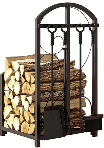 - FUNCTIONAL DÉCOR : Integrated hooks on the stand create places to hang the tools including a tong, poker, brush, and shovel, to maintain the fire safely and easily. Two arched designs add a sense of beauty. The design of the mesh can add a unique touch to your room or outside space, which is suitable for your fireplace or wood-burning stove.